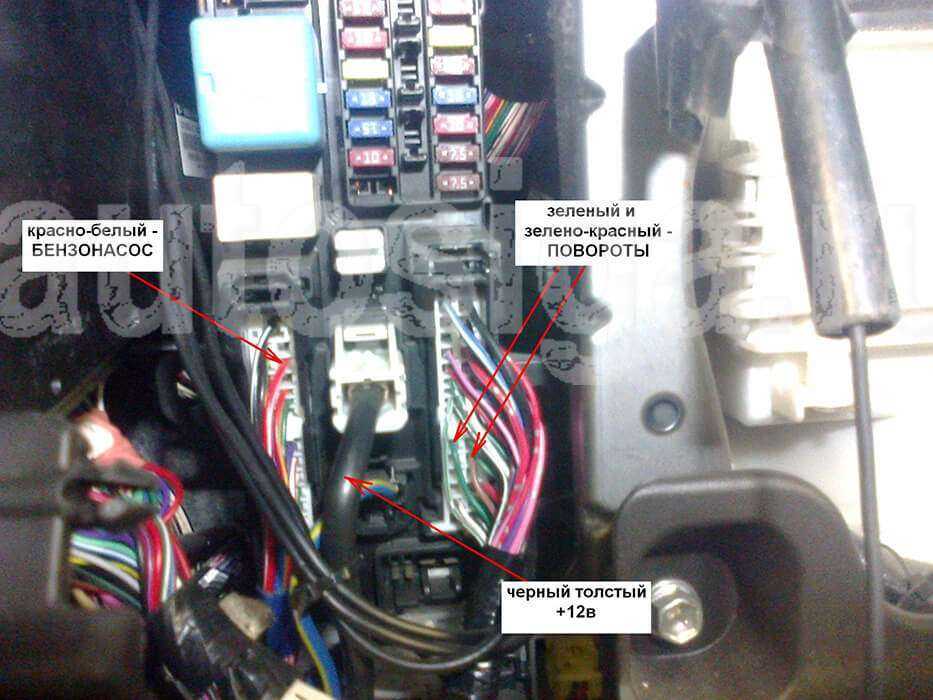 Точки подключения автосигнализации на Toyota Passo 2005