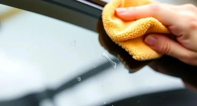 - Протрите стекло микрофиброй.