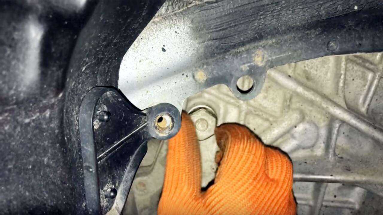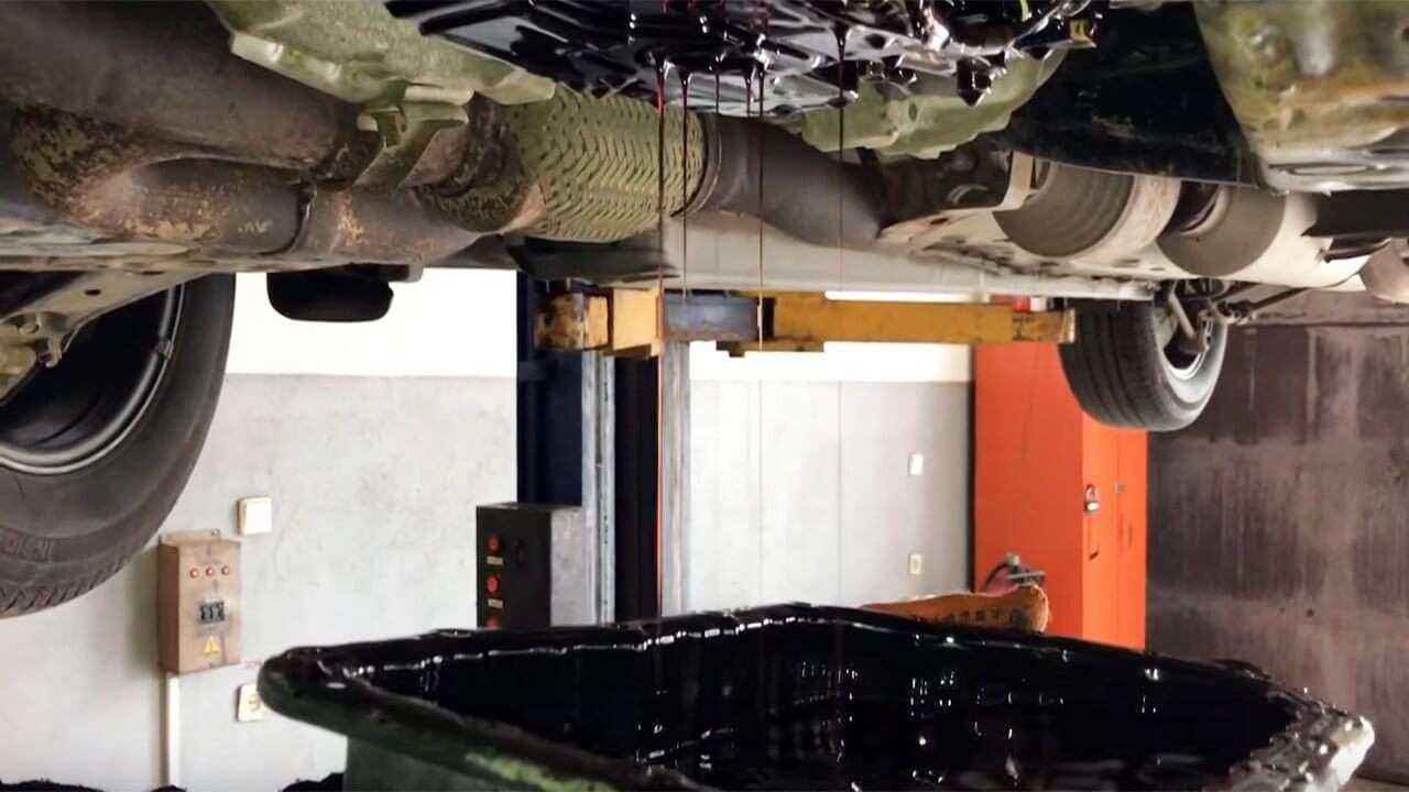 Нагрев транспортное средство, необходимо установить автомобиль на подъемную яму для выполнения работы по замене смазки в коробке передач автомат. Первым шагом является слив старого масла: